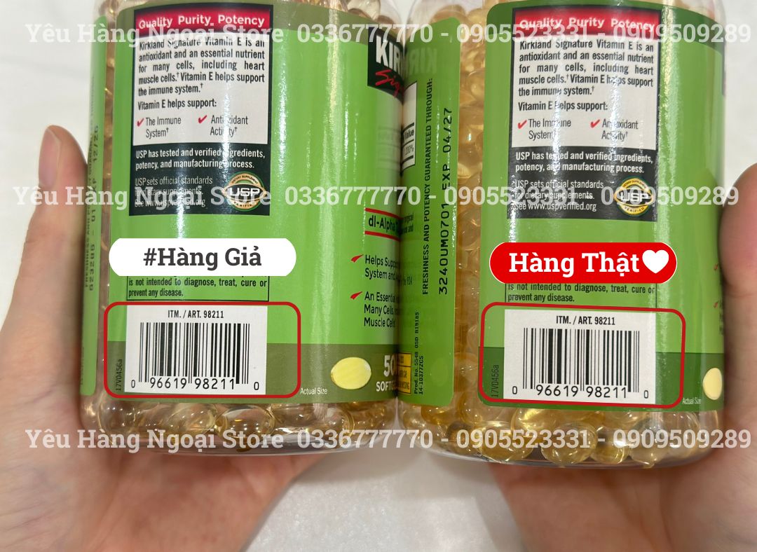 ➤ Như vậy, để bổ sung Vitamin E 500 viên được tốt nhất bạn cần dùng chúng đúng cách, đúng liều và quan trọng hơn là phải lựa chọn được chính hãng. Mong rằng qua bài viết cách phân biệt hàng thật và giả Vitamin E 500 viên của Kirkland Mỹ mà Yêu Hàng Ngoại STORE giới thiệu sẽ giúp bạn tìm được sản phẩm ưng ý, an toàn trong quá trình sử dụng.