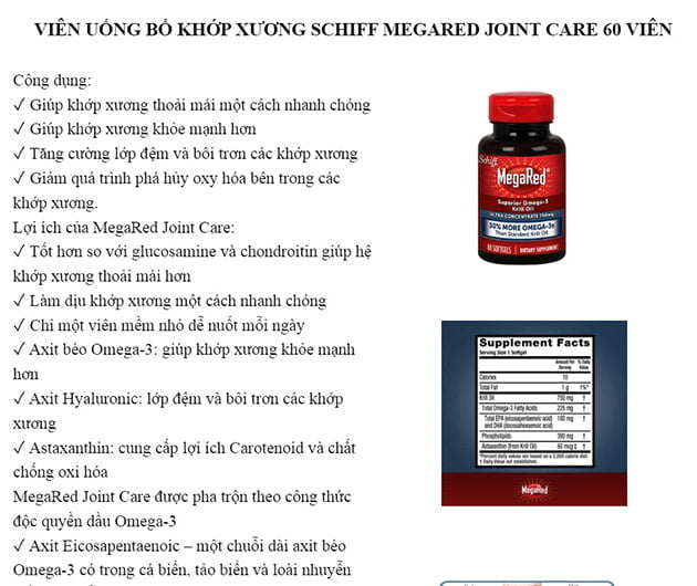 Giới thiệu thuốc bổ xương khớp MegaRed Joint Care của Mỹ: